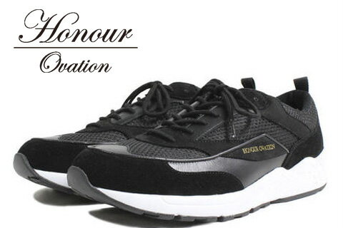 Honour Ovation(アナーオベーション) レザーデザインスニーカー【メンズ】【黒/ブラック】【Black】【4040】【2018秋冬新作】【雑誌OCEANS・WOOFIN' 掲載ブランド】【ローカット】【ストリート】【スポーツMIX】