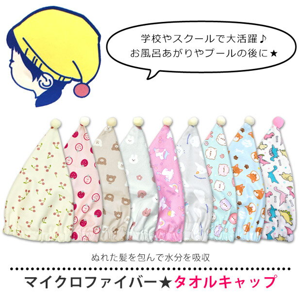 【2点以上でメール便送料無料】 タオルキャップ マイクロファイバー タオル キャップ キャップタオル ドライキャップ 吸収 速乾 タオルドライ ヘアキャップ キッズ 子供 キッズキャップ のびのびタオル プールキャップ スイミングタオル 水泳タオル タオル 吸収性抜群 帽子 女の子 プール 水泳 海 温泉 お風呂 ヘアターバン 水泳ヘアターバン ピンク/サックス/イエロー/ホワイト キッズ用 フリーサイズ コスメ ペンギン 犬 ドッグ 柴犬 恐竜 ユニコーン ゆめかわ ドリンク ポンポン付き ボンボン付き おしゃれ 可愛い 76511 76513 76514 76641 76642 76643 ●サイズ:キッズフリーサイズ ●カラー:全6柄 【76511】イエロー/コスメ柄 【76513】ホワイト/ドリンク柄 【76514】ピンク/ペンギン柄 【76641】L.サックス/ユニコーン柄 【76642】ホワイト/恐竜柄 【76643】サックス/しばいぬ柄 ●素材:ポリエステル80%・アクリル20% ●この商品はインナー扱いとなりますので、衛生上いかなる場合も返品・交換できません。