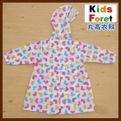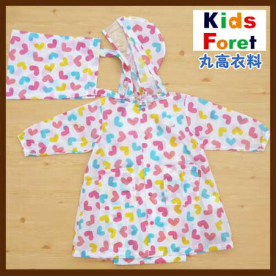 【メール便送料無料】Kids Foret【キッズフォーレ】ハート総柄レインコート【オフホワイト】【ピンク】B81883 丸高衣料【ランドセル対応 女の子 通園 通学 子供 キッズ 小学生 保育園 幼稚園 雨具 遠足 アウトドア】【532P19Apr16】