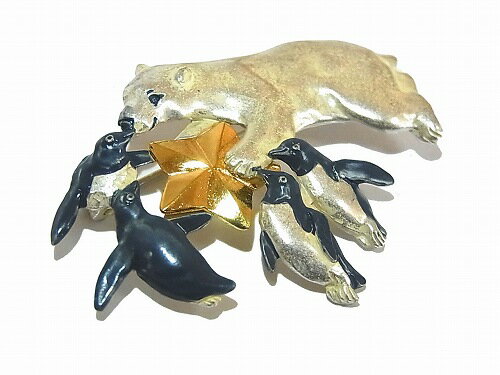 ギフト対応 『シリウス ブローチ』 北極のシロクマと南極のペンギンが出会った! キラキラ輝くお星様を囲んでシロクマとペンギンたちが海を泳いでいます。